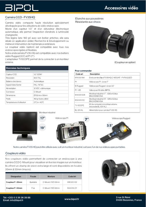 Nos vidéoscopes P1 & Rugged sont compatibles avec la caméra FV35HQ (auto-alimentée) pour une utilisation nomade.
