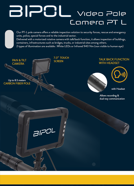 Our PT-L pole camera offers a reliable inspection solution to security forces, rescue and emergency units, police, special forces and to the industrial sector.