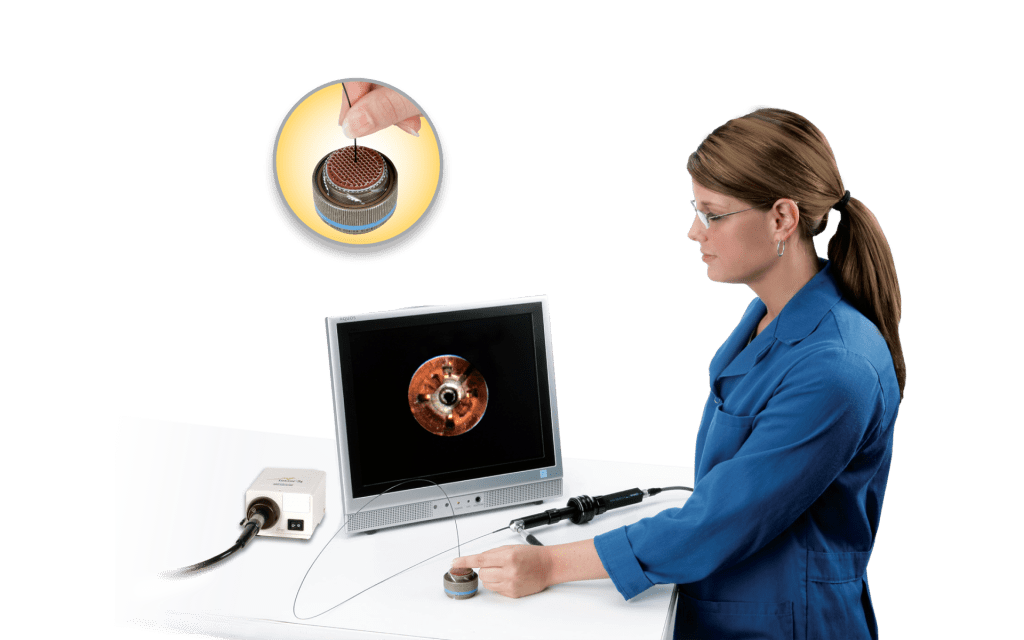 The depth of field range allows comfortable inspection in small apertures. Quickly and easily inspect cooling holes inside turbine blades, cannulas, catheters, needles, trocars, valves in medical devices, and many other micro manufactured parts.