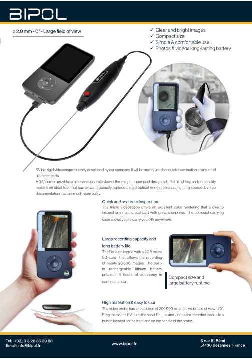 RV is a rigid videoscope recently developed by our company. It is the perfect tool for small parts inspection.