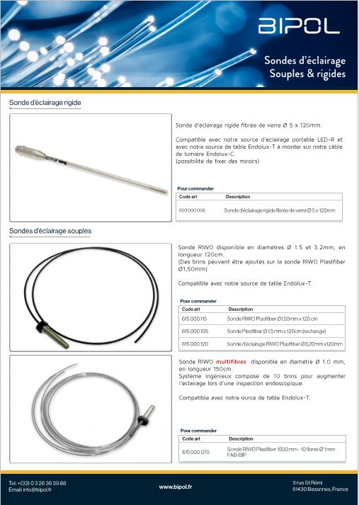 Une version sonde RIWO multifibres est disponible en diamètre Ø 1.0 mm, en longueur 150cm.