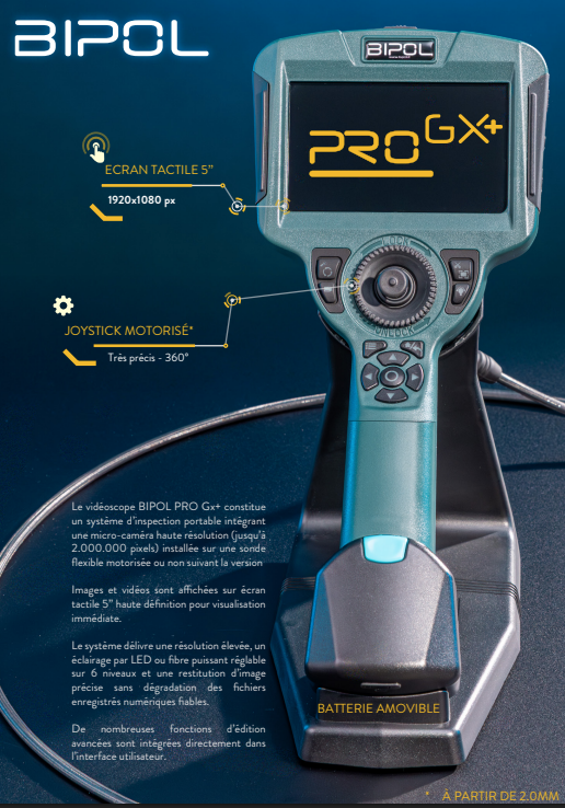 Des kits vidéo portables pour l’inspection en temps réel avec vidéo ou enregistrement d’images fixes peuvent être ajoutés pour augmenter le confort d’utilisation lorsque de grandes quantités de pièces doivent être vérifiées. Cela vous permet d’éviter le démontage coûteux des pièces, et vous permet de réduire les coûts d’intervention.
